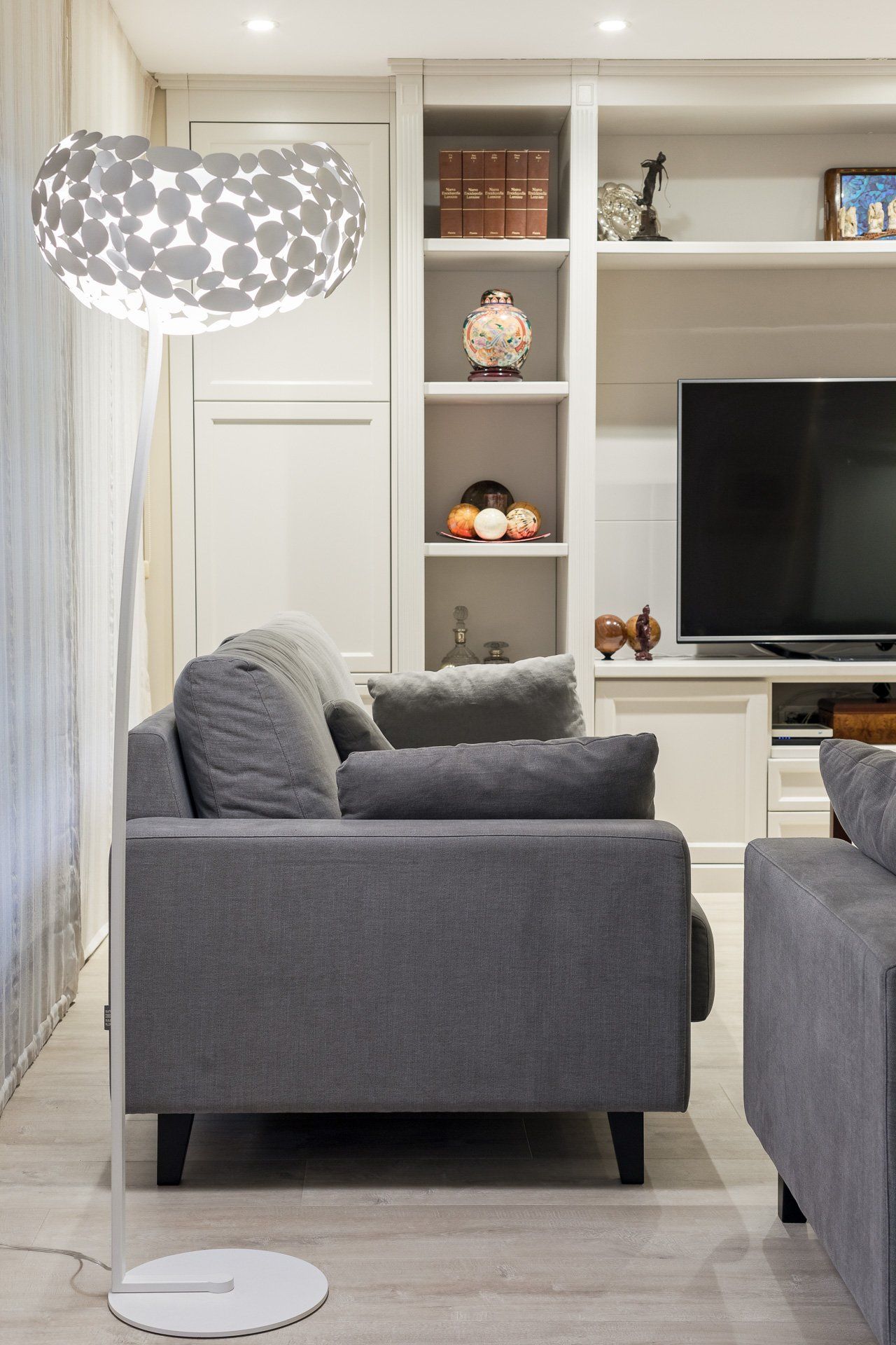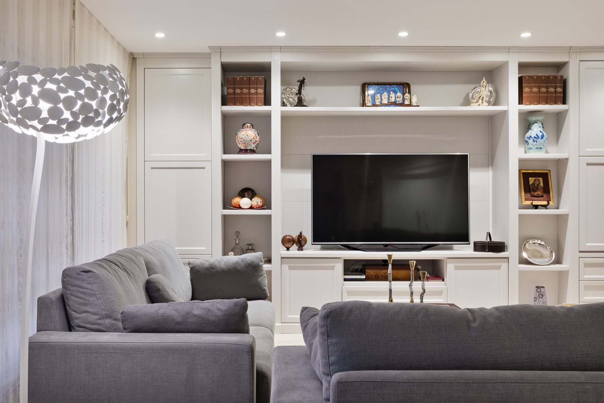 En nuestro estudio trabajamos siempre con los mejores materiales, ofreciendo una gran calidad i estética. Nuestro trabajo en esta vivienda en la zona alta de Barcelona consistió en una propuesta de mobiliario a medida para salón y dormitorios y una reforma general de la vivienda. Con un mueble para almacenamiento de madera lacada totalmente a medida por nuestro taller de ebanistería de confianza, un sofá también hecho para la ocasión de 4 mts con telas italianas y parquet vinílico de gran calidad. Creando un entorno de relajación y tranquilidad y marcando el sofá como pieza central en el gran salón de esta vivienda.